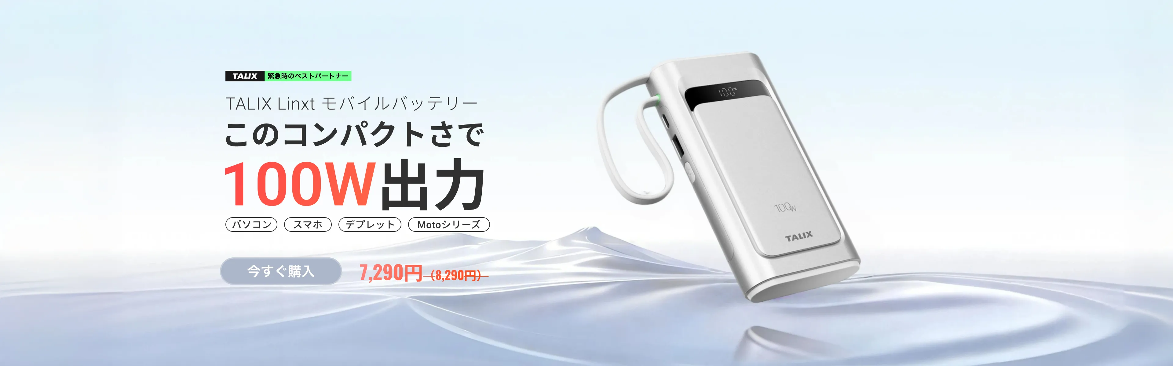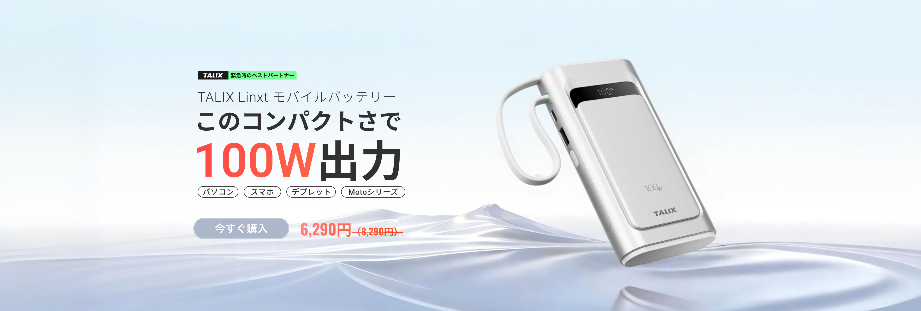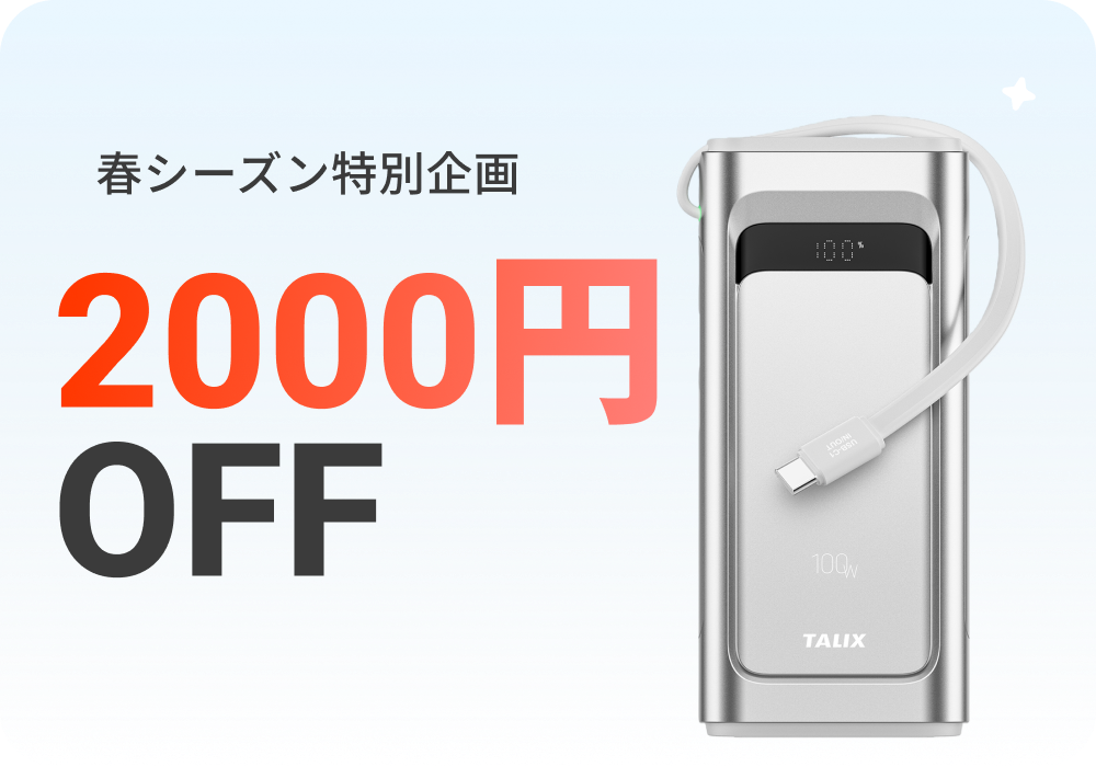 外出先での作業時や、バッテリー残量が少ない際の補助電源としてご利用いただけます。