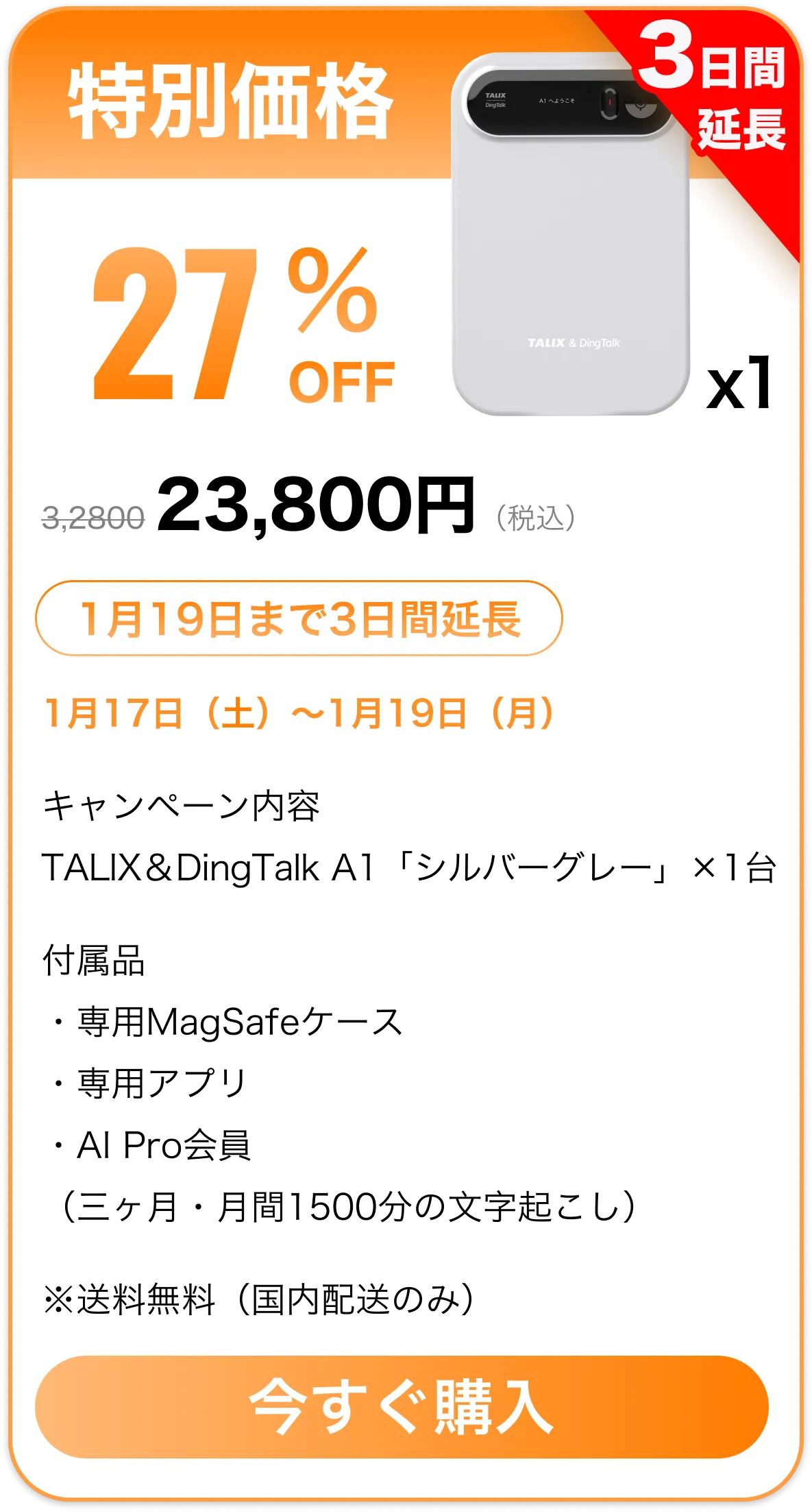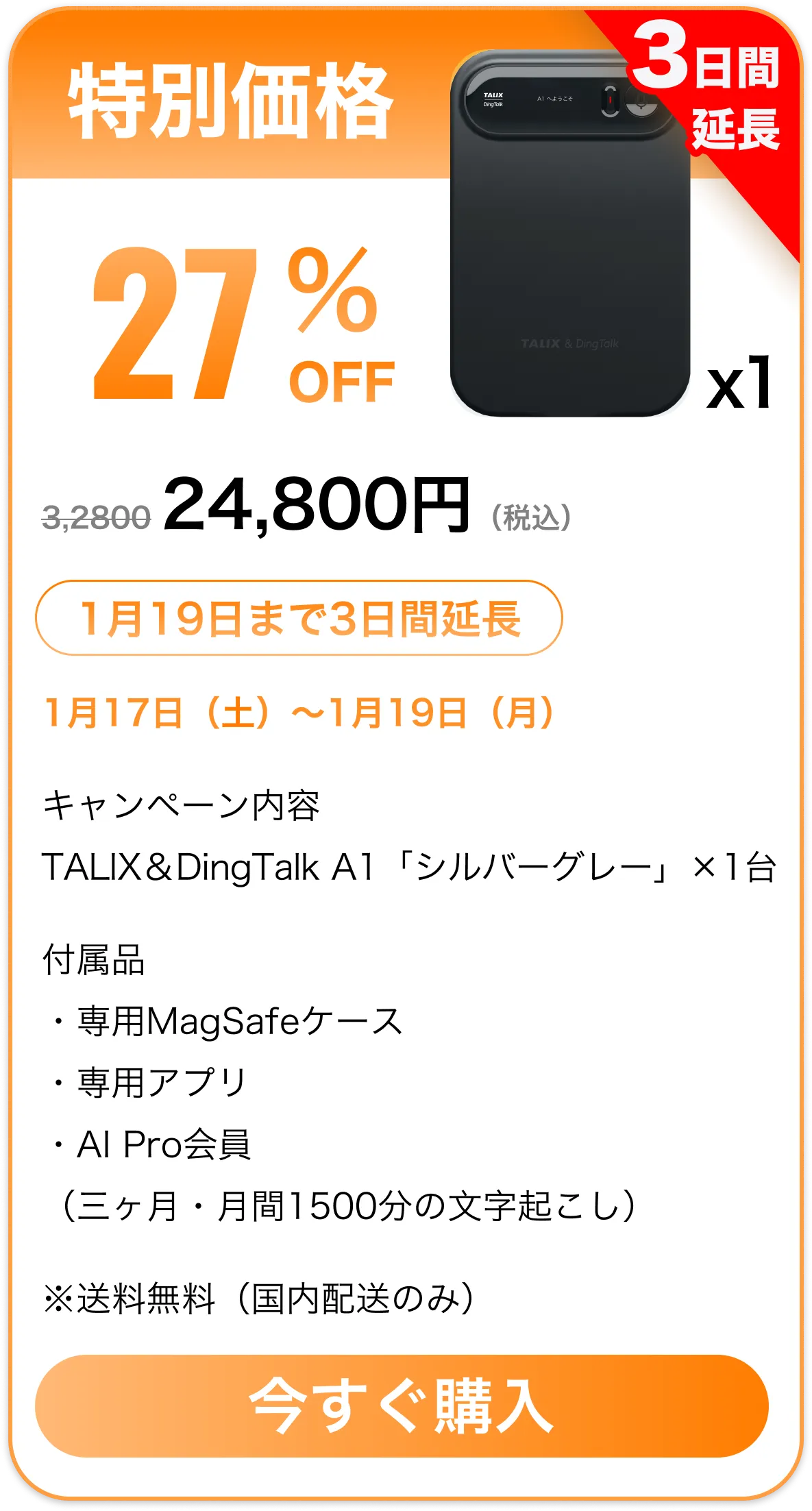 TALIX & DingTalk A1 AIアシスタント・AIボイスレコーダー・通話録音・クリアに通訳・議事録自動作成・ToDo作業ーーAI時代の効率革命